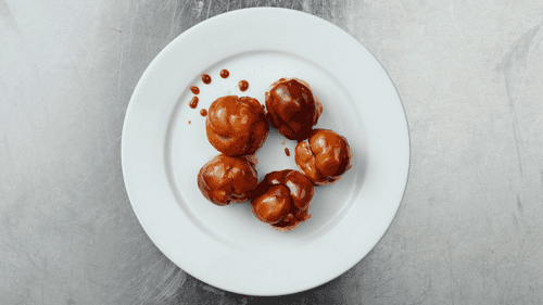 Профитроли с заварным кремом и карамельным соусом