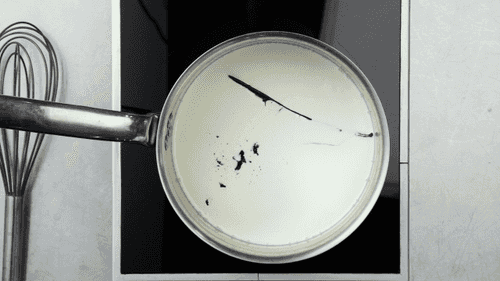 Замочить желатин в небольшом количестве воды. В отдельном сотейнике смешать молоко, 100 г сливок и стручок ванили, разрезанный пополам. По желанию из ванили можно достать семена и добавить их в молочную смесь. Довести до медленного кипения.