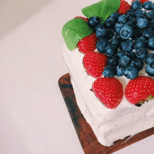 Сверху украсить торт свежими сезонными ягодами, фруктами или живыми бутонами цветов.