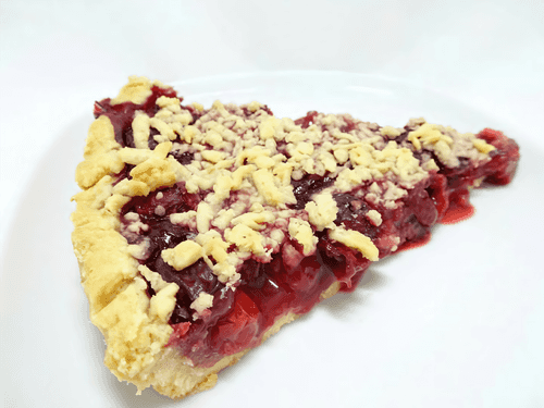 Добавить ягодную начинку (например, 800 грамм вишни, смешанной с 4 столовыми ложками сахара и 4 столовыми ложками муки). Тесто из морозильной камеры натереть на терке, обсыпать им сверху пирог.