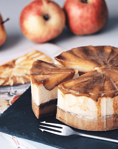 Выложить дольки в форму на пленку и залить оставшейся карамелью (вполовину от высоты яблок)