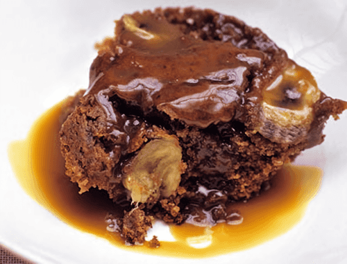 Готовый пудинг выложить на тарелку и полей сверху карамельным соусом.