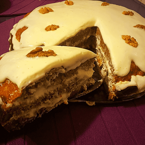Пряный морковный торт со сметанным кремом — это элегантное сочетание мягкости, насыщенного вкуса и ароматной пряности. Его корни уходят в американскую кулинарную традицию, где морковь стала популярным ингредиентом в десертах благодаря своей естественной сладости и влажности. Теплые нотки корицы, имбиря и кардамона наполняют каждый кусочек уютом, а орехи добавляют хрустящую текстуру. Крем из сметаны и рикотты придает торту нежность и легкость, гармонично смягчая пряные акценты. Этот десерт идеален для уютных вечеров с чашкой чая или кофе, а его насыщенный вкус делает его превосходным выбором для праздничных застолий. Охлажденный, он становится еще более насыщенным, позволяя вкусам раскрыться в полной мере. Настоящая гастрономическая симфония, объединяющая традиции и современную изысканность.