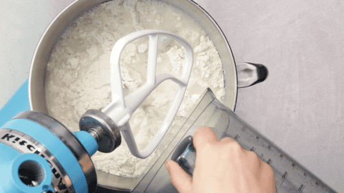 Смешать муку обычную и мелкого помола, 500 мл теплой воды, дрожжи, соль и аккуратно вымесить до однородной консистенции (10-15 минут).