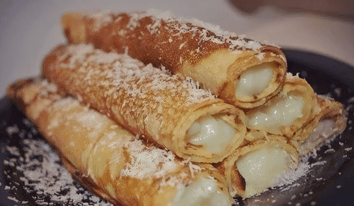 Блинчики с заварным кремом — это утонченное французское лакомство, способное покорить любого гурмана. Истоки этого блюда уходят во времена изысканной французской кулинарии, где сочетание нежных блинов и бархатного крема стало символом утренней элегантности. Тонкие, воздушные блинчики пропитаны ароматом ванили, а их начинка — мягкий и сладкий заварной крем — дарит неповторимую гармонию вкусов. Крем обладает нежной текстурой, приятно тающей во рту, а добавление кокосовой стружки придает легкую экзотическую нотку. Такие блинчики идеально подойдут как для утреннего завтрака, так и для утонченного десерта к чаю. Их можно украсить свежими ягодами или шоколадным соусом, создавая настоящее произведение гастрономического искусства.