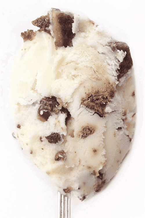 Заморозьте во фризере для мороженого в соответствии с инструкцией, добавив 1/2 чайной ложки ванильного экстракта в первые пару минут и предварительно кубики теста в последние пару минут заморозки. Варьируйте количество теста в зависимости от личных предпочтений. Или исходя из правила - больше для детей, меньше для взрослых. Или наоборот. Whatsoever. Готовое мороженое уберите в контейнер и в морозилку минимум на 4 часа до подачи.