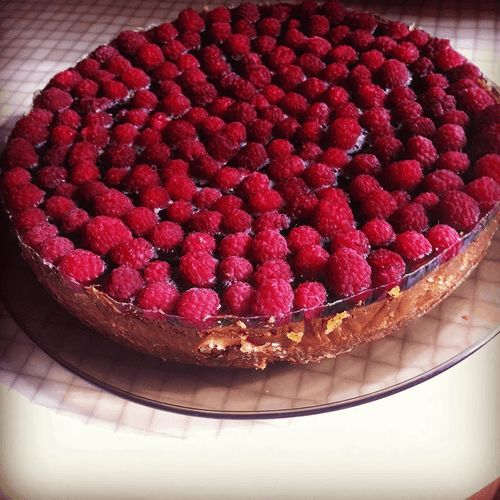 Запекать 1 час в духовке при температуре 150 гр. Затем остудить и поставить в холодильник на 4 часа. Распустить пакетик желатина в 200 г. сладкой воды, уложить ягоды на торт и залить желатиновой смесью.