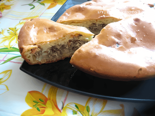 Пирог с рыбными консервами и картофелем на кефире с яйцами