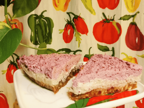 Банановый сыроедческий кешьюкейк с брусникой