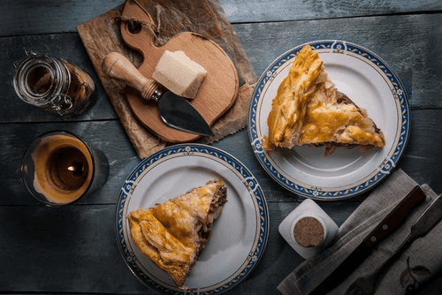 Оставшееся тесто раскатать и накрыть им начинку. Края прижать.