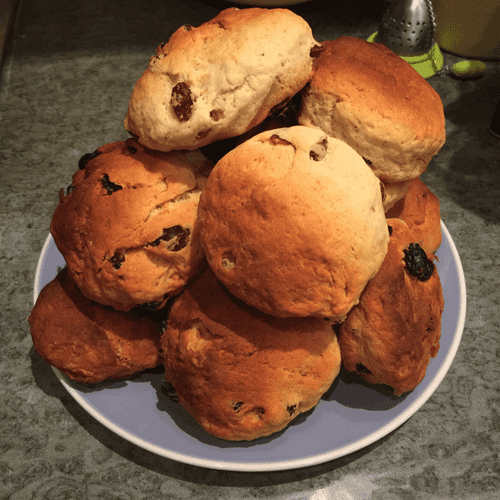 Если планируется делать не с изюмом, а с сыром, можно наполовину уменьшить объем фруктозы и добавить сухие пряности по вкусу (перец, итальянскую смесь для пиццы и пр.). В этом случае можно подавать даже с супом или борщом. Если предполагаете делать и с изюмом, и с сыром из одного замеса — делайте все по рецепту. Будет вкусно и то, и другое.