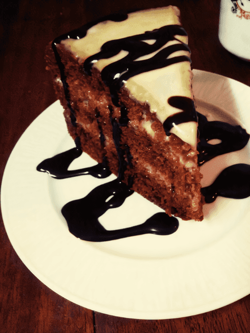Готовый кекс ниткой разрежьте на 3 коржа, остудите. Хорошенько промажьте кремом все коржи и бока торта. Хорошо, если торт постоит несколько часов для пропитки, так он будет намного нежнее, но если сделать хоть один надрез, нежности не получите. Лучше подождать. Разрезайте на кусочки, перед подачей полейте шоколадным соусом!