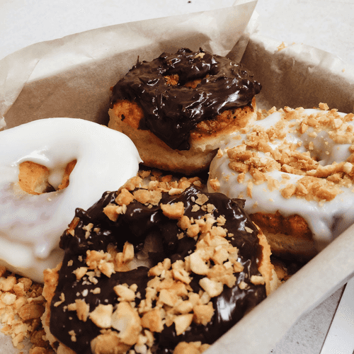 Творожные пончики – это нежное и воздушное лакомство, бережно хранящее традиции русской кухни. Их история уходит корнями в домашнюю выпечку, где творог использовался для создания мягкого, чуть кисловатого теста. Эти пончики, обжаренные до золотистого цвета, обладают хрустящей корочкой и бархатистой серединой. Белая глазурь придает им деликатную сладость, а шоколадная добавляет насыщенности вкусу. Идеальны к утреннему кофе или вечернему чаепитию, они радуют своей легкостью и изысканностью. Особым штрихом может стать посыпка орехами, придающая им текстурное разнообразие. Уникальное сочетание простоты приготовления и утонченного вкуса делает творожные пончики любимым лакомством для всей семьи.