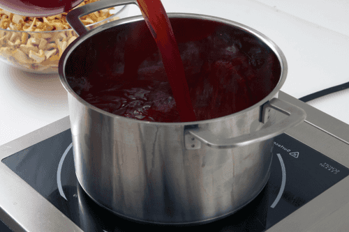 Вылить в кастрюлю 3 литра сока, всыпать сахар и кипятить до растворения сахара.