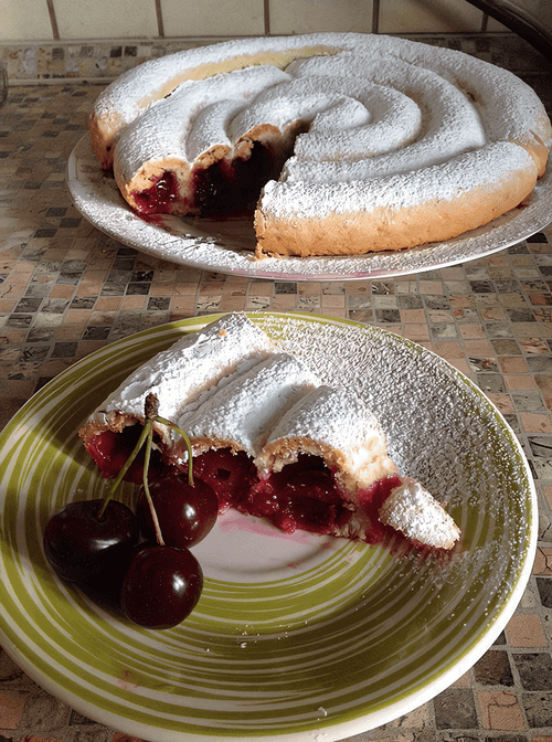 Необычный вишневый пирог на кефирном тесте — это изысканное сочетание нежного, воздушного теста и сочной вишневой начинки. Его корни уходят в традиции русской кухни, где кефирное тесто ценится за мягкость и легкость. Сладкая вишня, заключенная в тонкое тесто, после выпекания приобретает насыщенный вкус с легкой кислинкой, создавая восхитительный контраст. Пирог подается теплым, посыпанным сахарной пудрой, что придает ему утонченную сладость. Его форма в виде спирали делает его не только вкусным, но и эстетически привлекательным. Этот пирог идеально подойдет для уютного чаепития в кругу семьи или как элегантное угощение для гостей.
