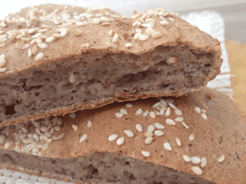 Хлеб из гречневой муки с кунжутом — это ароматное и полезное изделие, которое укоренилось в традициях русской кухни. Гречневая мука придаёт хлебу насыщенный ореховый вкус и делает его питательным, а кефир добавляет мягкость и нежность. Кунжутные семечки украшают корочку аппетитной текстурой и усиливают природную ореховую нотку. Этот хлеб идеально подходит для тех, кто следит за питанием, ведь он не содержит глютен и богат белком. Он прекрасно сочетается с лёгкими пастами, сыром или просто сливочным маслом. Процесс его приготовления требует внимания к деталям: длительное запекание на низкой температуре делает его воздушным внутри и хрустящим снаружи. Такой хлеб будет отличным дополнением к завтраку или уютному ужину.