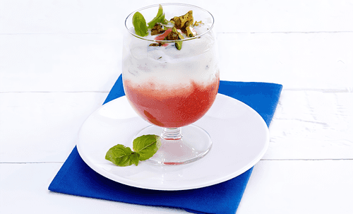 Йогуртный крем из базилика с клубничным соусом — это изысканный десерт, вдохновленный традициями итальянской кухни. Нежная текстура воздушного крема, пропитанного ароматом свежего базилика, гармонично сочетается с ярким, кисло-сладким клубничным соусом, который раскрывает все оттенки вкуса. Карамелизированные фисташки добавляют приятную хрусткость и делают блюдо еще более утонченным. Этот десерт идеально подходит как завершающий аккорд легкого обеда или праздничного ужина, даря неповторимое удовольствие и освежающий вкус. Истоки рецепта уходят в средиземноморскую традицию использования свежих трав в сладких блюдах, а его сочетание ингредиентов — это баланс между насыщенной кремовой нежностью и фруктовой свежестью. Подается охлажденным, украшая стол своей элегантностью.