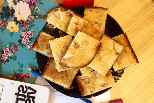 Подавать разрезанными на прямоугольные кусочки, сверху можно украсить сахарной пудрой.