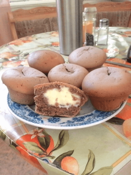 Заполнить смазанные маслом формочки на треть шоколадным тестом. Выложить по половине чайной ложки крема и накрыть еще на треть шоколадным тестом. Отправить маффины в духовку, разогретую до 200°C, на 20–30 минут.