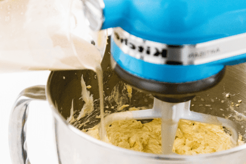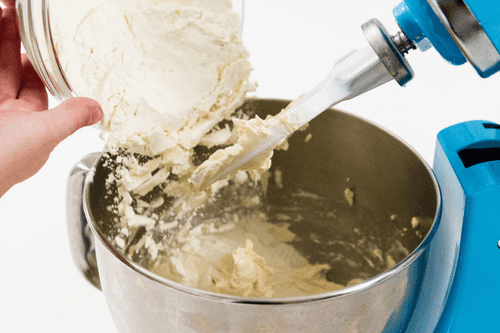 Добавить уксус и ванильный экстракт, продолжать перемешать. Медленно добавить сметану, затем, снова достигнув однородности, добавить разведенные дрожжи.