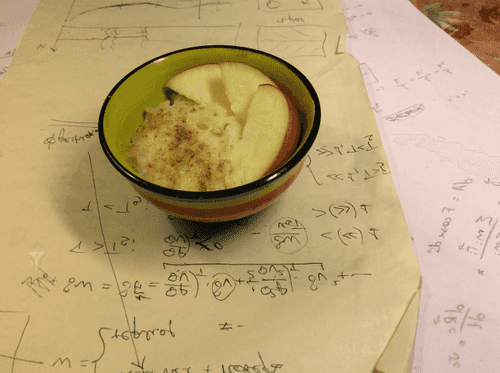Пока крем остывает, трем яблоки на тёрке. И уже остывший крем смешиваем с яблоками.