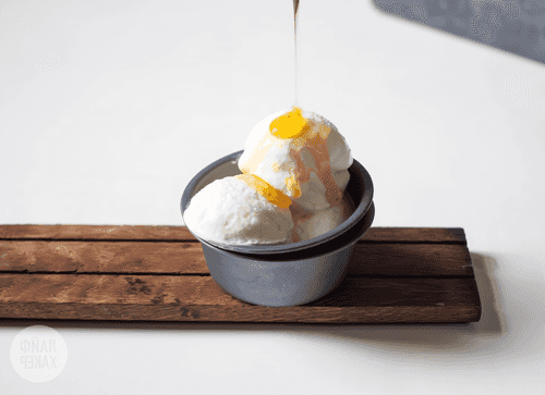 Подавайте замороженный йогурт с любыми дополнениями — от фруктов до сиропов, шоколада и мёда.