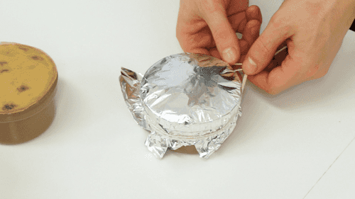 Затем накрыть фольгой, и обмотать каждую форму веревкой, соорудив ручку для удобства.