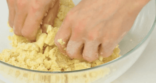 Втереть в муку масло руками, чтобы тесто напоминало песок.