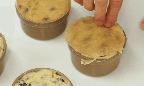 Накрыть пудинг кругом из бумаги, смазанной стороной вниз.