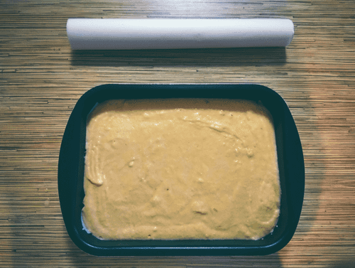 Смазать форму маслом, либо застелить бумагой для выпечки, вылить туда «сырой» пирог, ставить на 30 минут в разогретую до 180 градусов духовку. С учетом, что форма для выпечки индивидуальная, время приготовления может варьироваться от 20 до 40 минут, в зависимости от толщины пирога. Пирог считается готов, когда приобретает золотистый цвет.