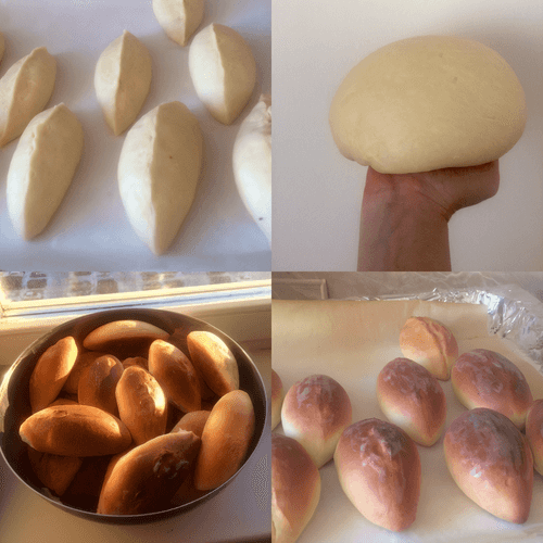 После того, как тесто поднимется еще раз тщательно взбить его руками. Можно приступать к приготовлению. Выпекать при температуре 180* , 15-20 минут. За несколько минут до готовности смазать пирожки сливочным маслом.