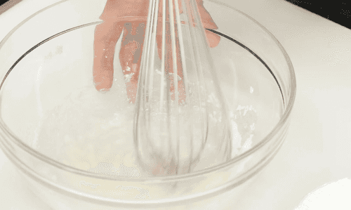 Смешать белок с сахарной пудрой при помощи вилки или миксера до густоты.