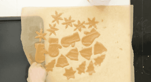 Вырезать печенья при помощи формочек. Запечь в духовке, разогретой до 180 градусов, в течение 6–8 минут.
