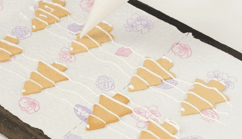 Положить глазурь в кондитерский мешок. Мешок ставить в емкость с кульком из полотенца — так глазурь не будет вытекать и засыхать.