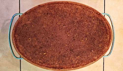Сверху обильно присыпать какао через сито. Чёрный шоколад и цедру лимона натереть на мелкой тёрке. Можно добавить цедру мандарина или апельсина.