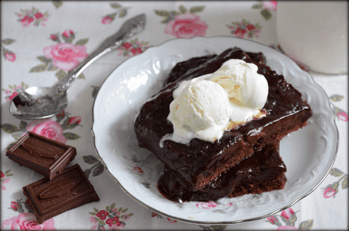 Растворить оставшиеся сахар и какао в 450 мл кипятка, осторожно влить в форму. Выпекать 25-30 минут – пудинги должны подняться и стать плотными. Подавать сразу, пока десерт не остыл.