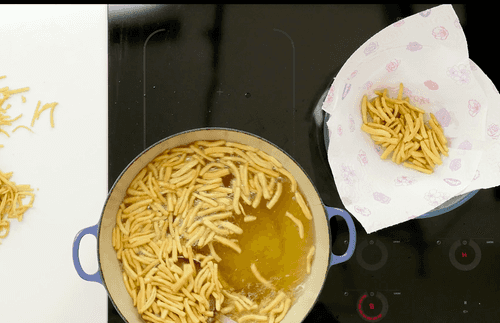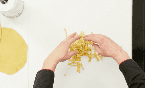 Полученную лапшу раскидать по столу и подсушить, пока греется масло.