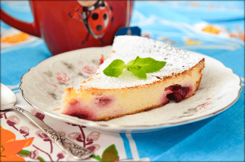 В тесто осторожно добавить вишни, творог и взбитые яичные белки.