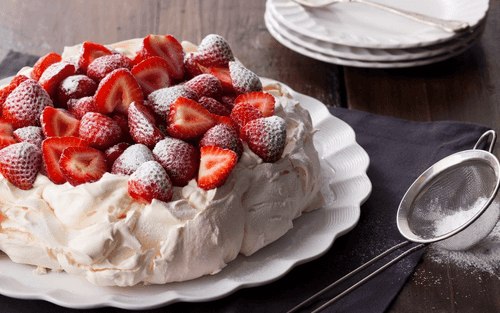 Торт-меренга с клубникой и взбитыми сливками — воплощение французской элегантности и утонченности. Этот изысканный десерт берет свои корни в классической «Павловой», знаменитом австралийско-новозеландском лакомстве, названном в честь балерины Анны Павловой. Нежная, воздушная основа из хрустящей меренги с легким карамельным оттенком тает во рту, а ее хрупкость прекрасно сочетается с бархатистой структурой взбитых сливок. Сладость дополняет свежая кислинка спелой клубники, создавая гармонию вкусов. Торт подают охлажденным, а его легкость делает его идеальным завершением романтического ужина или праздничного застолья. Незабываемый дуэт текстур и вкусов превращает его в настоящее произведение кулинарного искусства.