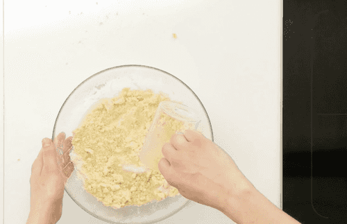 Перемешать масло с мукой так, чтобы получились крошки.