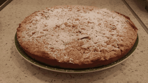 Готовый пирог посыпаем через сито сахарной пудрой по вкусу.
