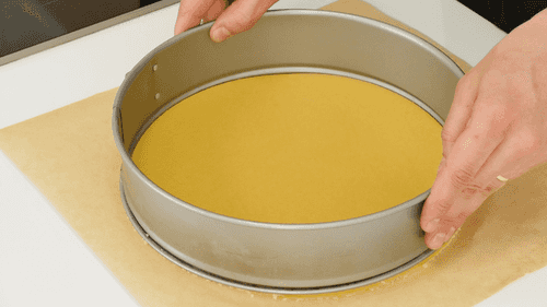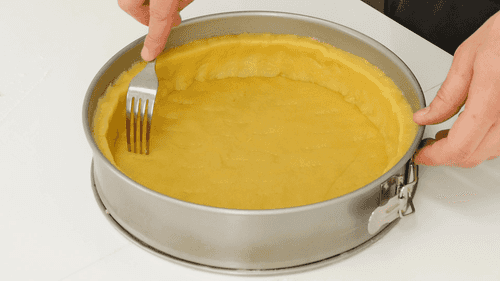 Остальное тесто раскатать и выложить в форму так, чтобы получился корж со стенками высотой примерно 3 сантиметра. Наколоть вилкой дно и убрать в холодильник.