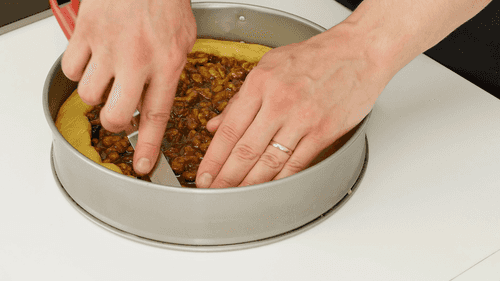 Перелить орехово-сливочную смесь в форму с тестом.