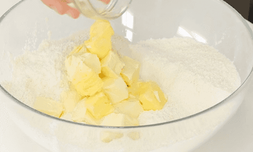 Просеянную муку смешать с сахаром и солью.