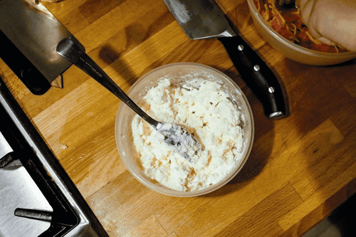 Мягкий сыр выложите в миску и хорошо разомните вилкой.
