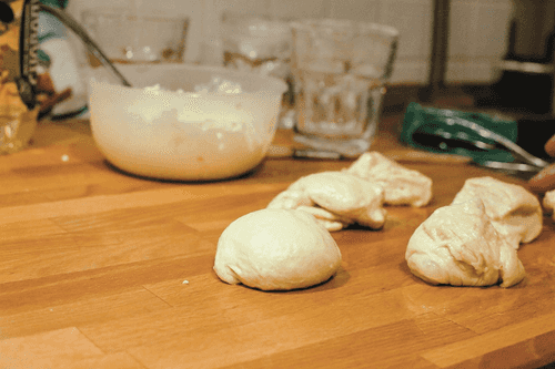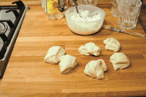 Тесто разделите на 6 частей. Если вы используете замороженное тесто, то сначала дайте ему хорошо оттаять при комнатной температуре.