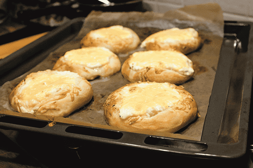 За время выпечки тесто по краю должно подрумяниться, а верхний слой сыра — расплавиться. Готовые шаньги достаньте из духовки, переложите на блюдо и подавайте горячими.