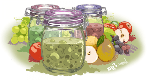 Яблоки, груши, бергамот, вишню, сушеные абрикосы и персики, красную и белую смородину, виноград, крыжовник, корки арбуза, недоспелую дыню маринуют следующим образом: сложить фрукты в стеклянные банки, каждый сорт фруктов отдельно, для того чтобы не передавали друг другу своего вкуса и запаха, залить их жидкостью — на каждую бутылку воды положить 1/2 бутылки крепкого уксуса, 1 1/2–2 стакана мелкого сахара или песка, 10 гвоздичек, 2 палочки корицы, или лучше не класть никаких духов, чтобы не отнимать природного вкуса, вскипятить, остудить, залить фрукты.