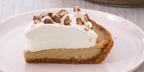 Сильно взбейте сливки и добавьте к ним сироп, сухое молоко и ваниль. Выложите на готовый пирог и посыпьте орехами в кленовом сиропе. Пирог можно подавать сразу.