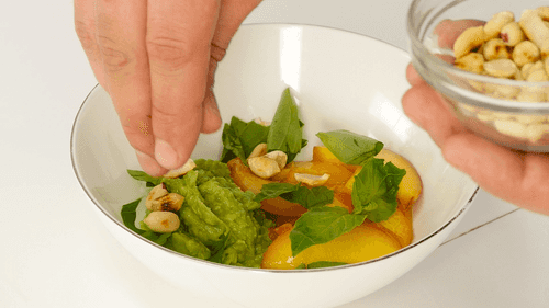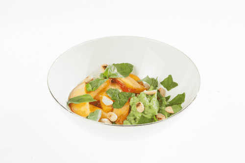 Мусс из авокадо с персиками и базиликом